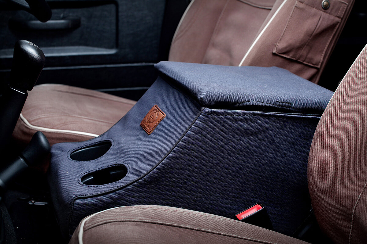 Covers the cubby box, as well as the console lid in our classic canvas.